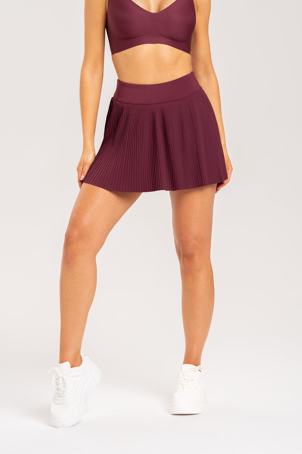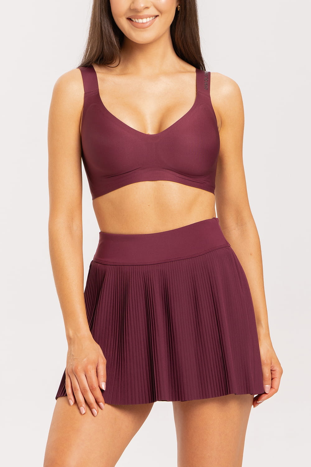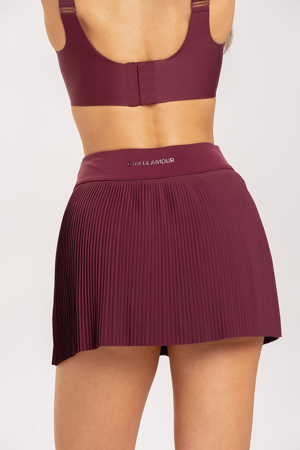Sportos szoknya redőzött alsó résszel, rugalmas, gyűrődésálló anyagból. Alatta különösen kényelmes, testhez simuló rövidnadrág található – mint egy második bőr. Maximális komfortot és teljes mozgásszabadságot biztosít, bármilyen intenzitású edzés során. A szabása nem korlátozza a mozgást, így tökéletes választás mind edzéshez, mind a hétköznapi viselethez. A hátoldalon, a derékrészen elhelyezett visszafogott Gym Glamour monogram logó egyedi karaktert ad a szoknyának.