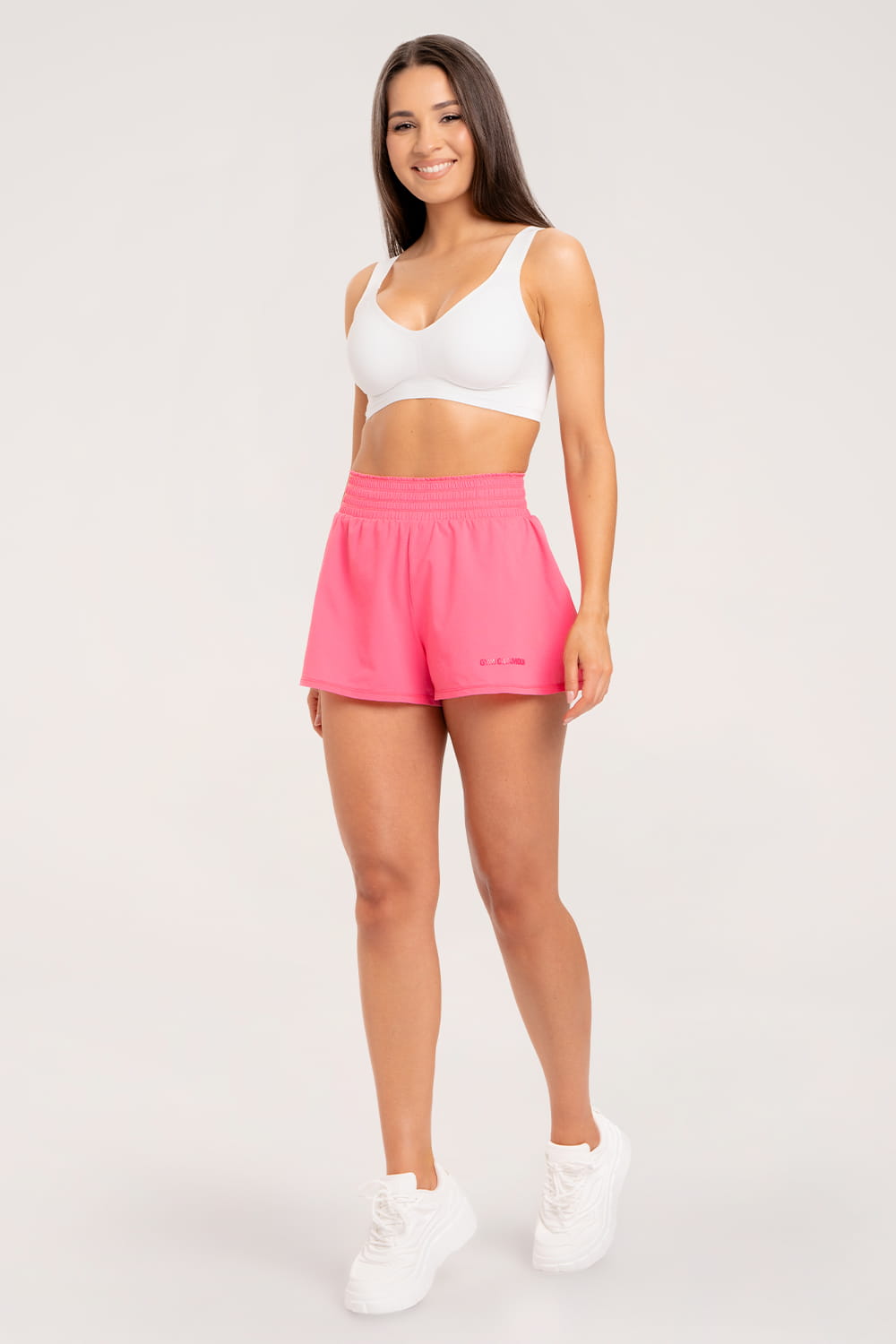 Kétrétegű rövidnadrág, amely egyszerre stílusos és kényelmes. A külső, bő szabású, könnyed anyag légies megjelenést kölcsönöz, míg a testhez simuló, praktikus belső biciklis nadrág – beépített telefontartó zsebbel – teljes mozgásszabadságot biztosít. A derékrészen rugalmas gumipánt és állítható megkötő gondoskodik a tökéletes illeszkedésről. A nadrágot finom, áttetsző, enyhén fénylő logó teszi teljessé.