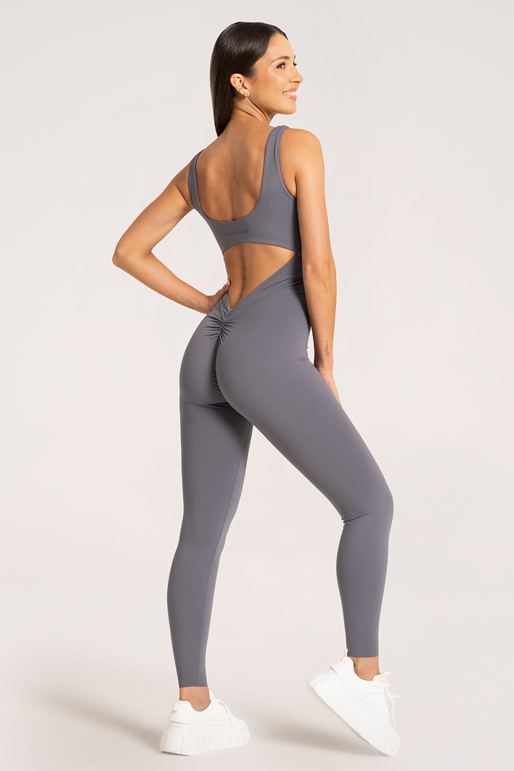 A mélyen kivágott hát és a V-alakú hátrész tovább hangsúlyozza a testet hátulról. A termék enyhe ráncolással készült a farpofákon, ami finoman kiemeli és formázza azokat. Az overál kivehető, formázott melltartóbetétekkel rendelkezik, amelyek kényelmet és egyéni illeszkedést biztosítanak.