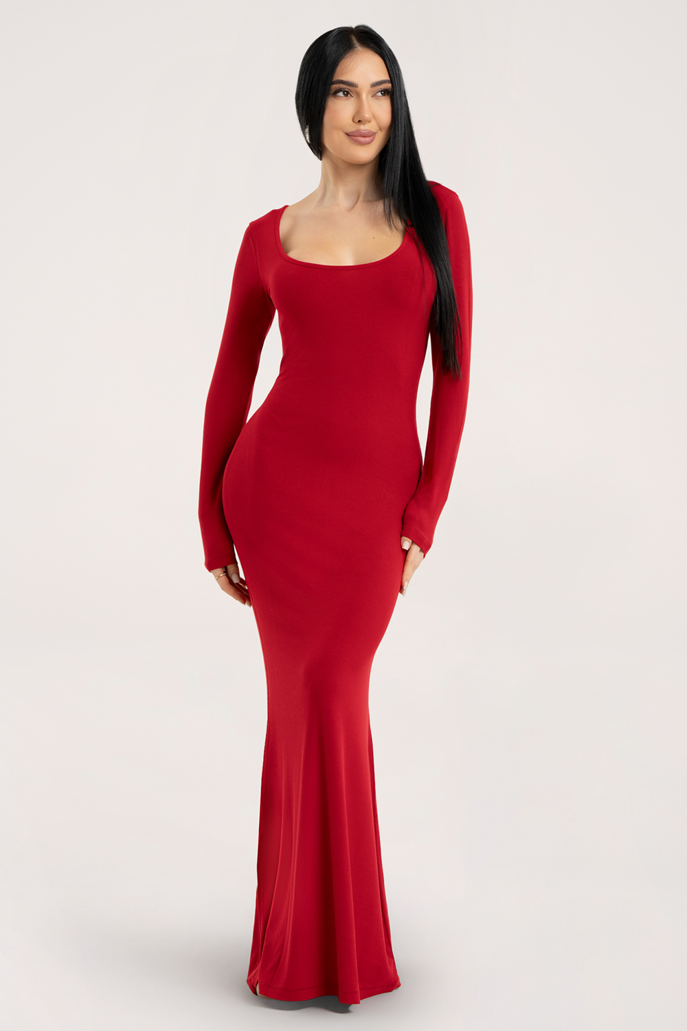 Flexi maxi ruha hosszú ujjal red