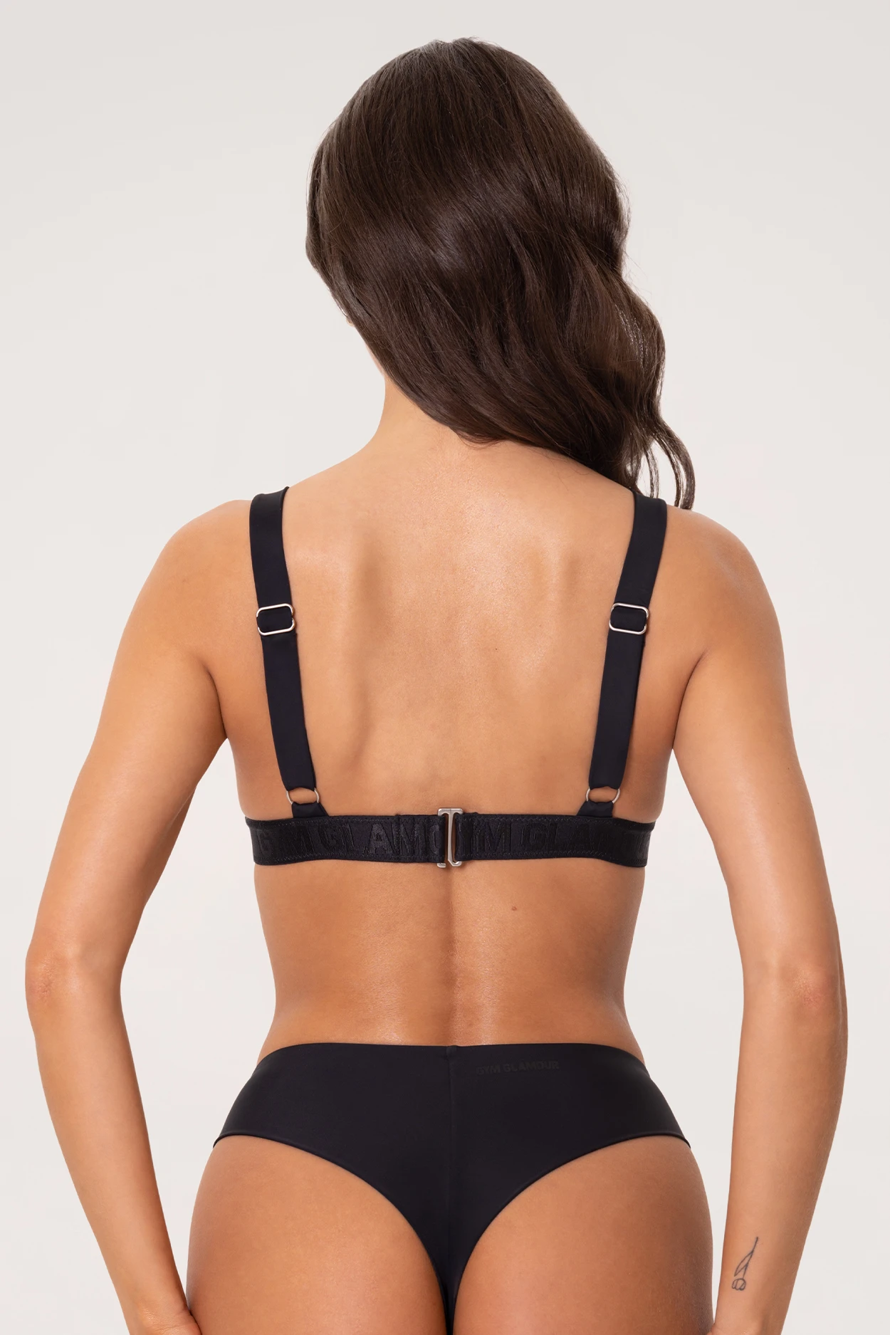 - A mell alatti rugalmas gumiszalagon elhelyezett monokróm Gym Glamour logó és a hátul található kapocs biztosítja a stabil tartást, az állítható körméret pedig tökéletes illeszkedést tesz lehetővé.