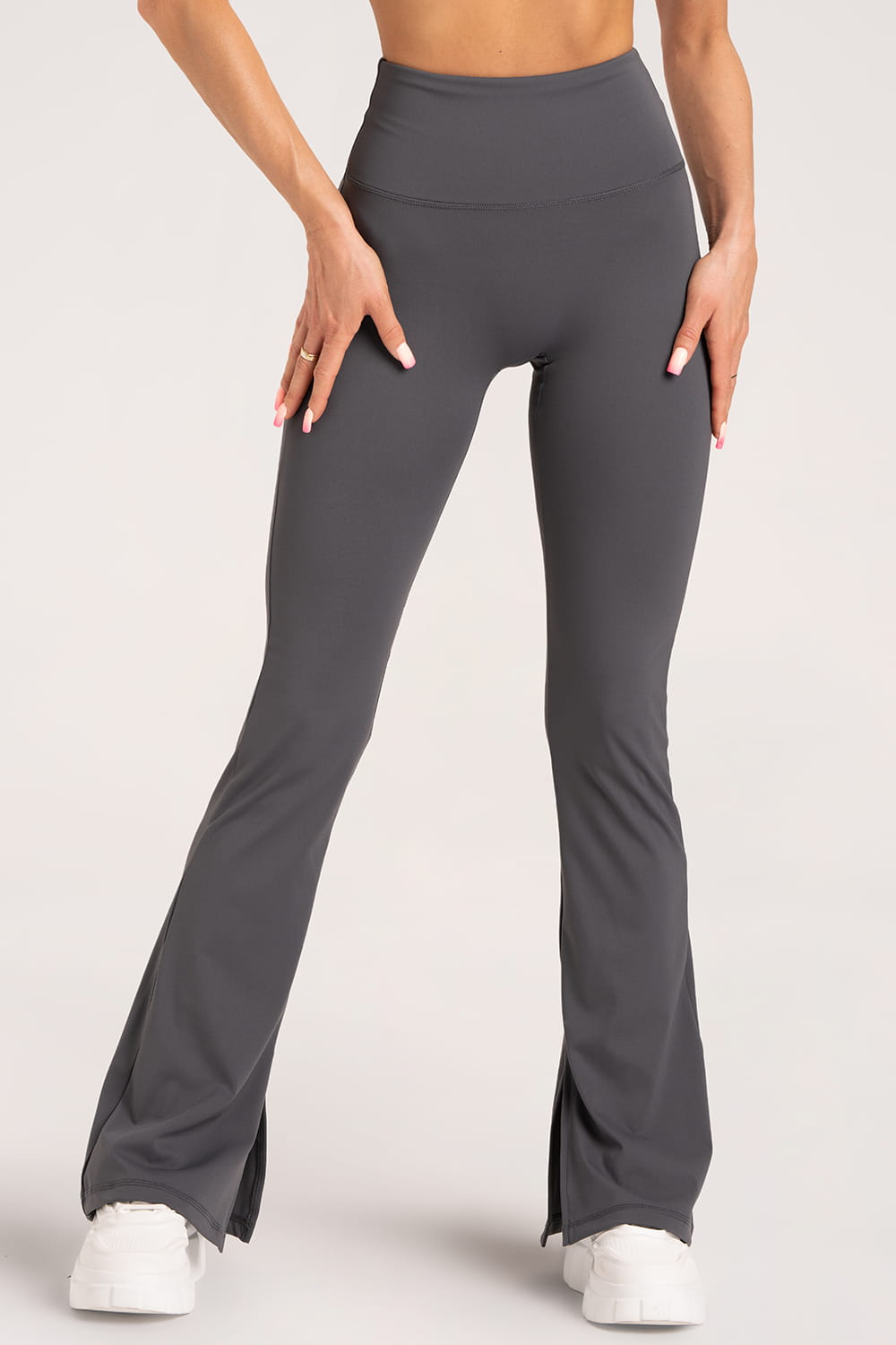 Szürke bő szárú fitnesz nadrág hasítékkal