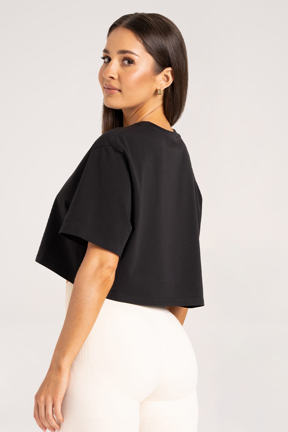 Rövidebb, derékig érő T-shirt doboz szabással. Laza forma, széles vállvonal és középen elhelyezett, finom logó jellemzi. 7 színben elérhető – ideális edzéshez és hétköznapi szettekhez. Elérhető hosszú ujjú változatban is.