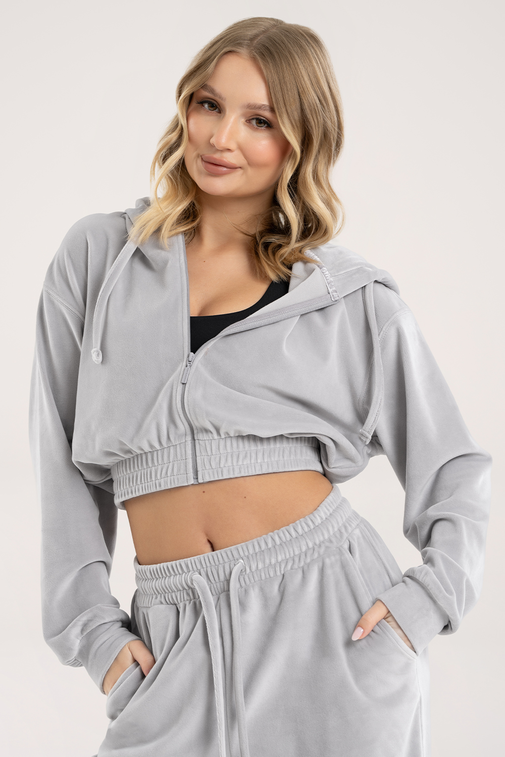 - A velúr finom csillogása elegáns, loungewear jelleget kölcsönöz az egésznek